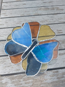 Tiffany is de betoverende kunst met glas en koper. Je kan fijner werken en je kan je fantasie de vrije loop laten. Er zijn zelfs 3D-creaties die vorm krijgen. Bij deze techniek werken we echt samen. De ene snijdt het glas en plakt de koper, de ander soldeert de stukjes glas samen.