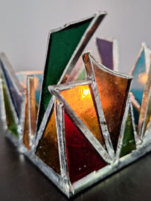 Ontdek onze eerste stappen in glas-in-loodcreaties. We proberen in onze ontwerpen kleuren en licht te laten samenwerken.